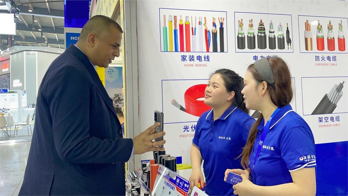 在展會現(xiàn)場,湘聯(lián)電纜圍繞光伏發(fā)電、新能源汽車、重型裝備等發(fā)展應(yīng)用場景,與國內(nèi)外參展觀眾就電線電纜的解決方案展開深入溝通與交流,生動呈現(xiàn)了公司產(chǎn)品在建筑工程、能源、電力等領(lǐng)域的廣泛應(yīng)用,贏得了廣泛關(guān)注。
